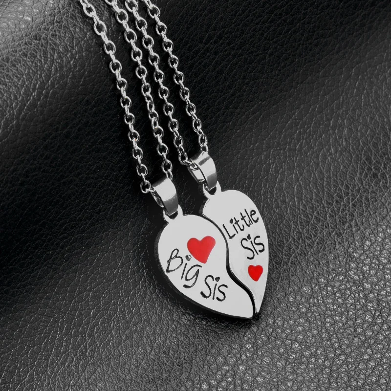 Buy 2pcs/set For Sisters BIG SIS LIL SIS Forever best friend Split Heart Family Love Pendant Necklace G