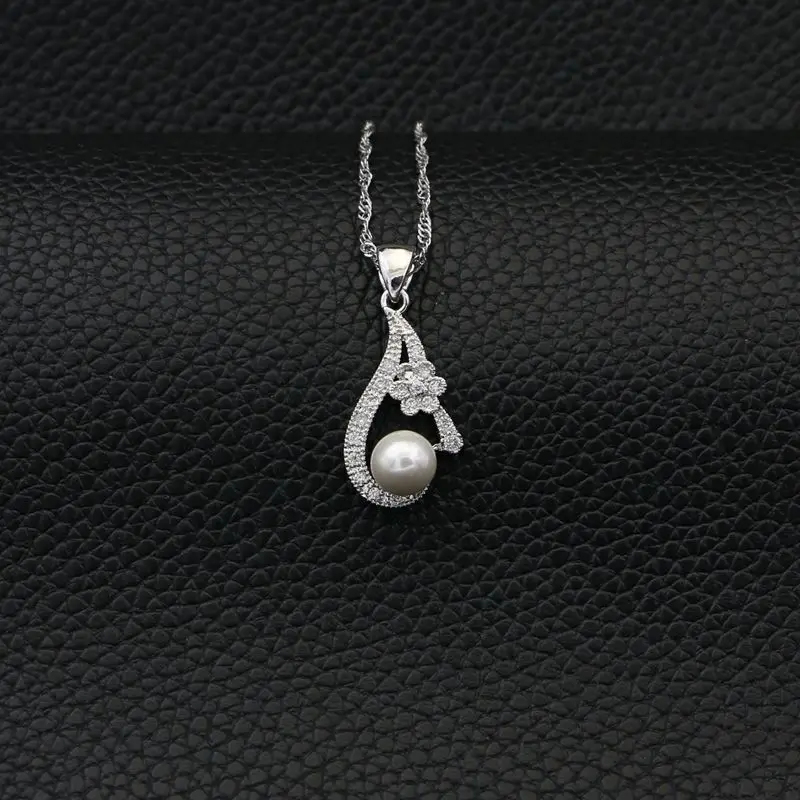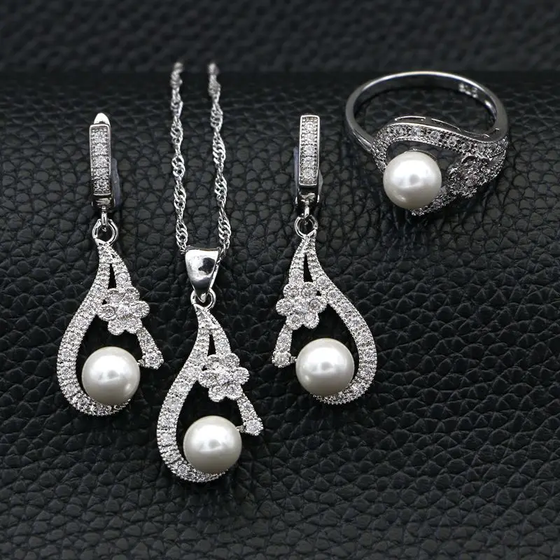 Best 925 Sterling Silver Bridal Pearl Jewelry Set For Women Wedding Decoration White Crystal Earrings/Ri