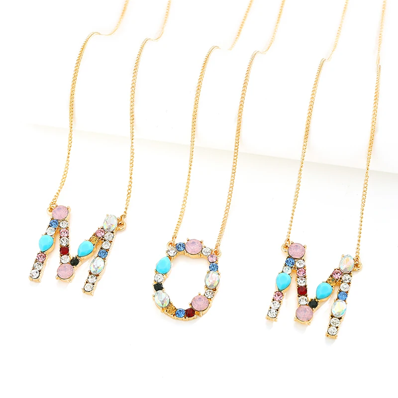 Best 2019 Large Colorful Initial Letter Necklace 26pcs Different Multicolor Rainbow Gold Pendant Necklac