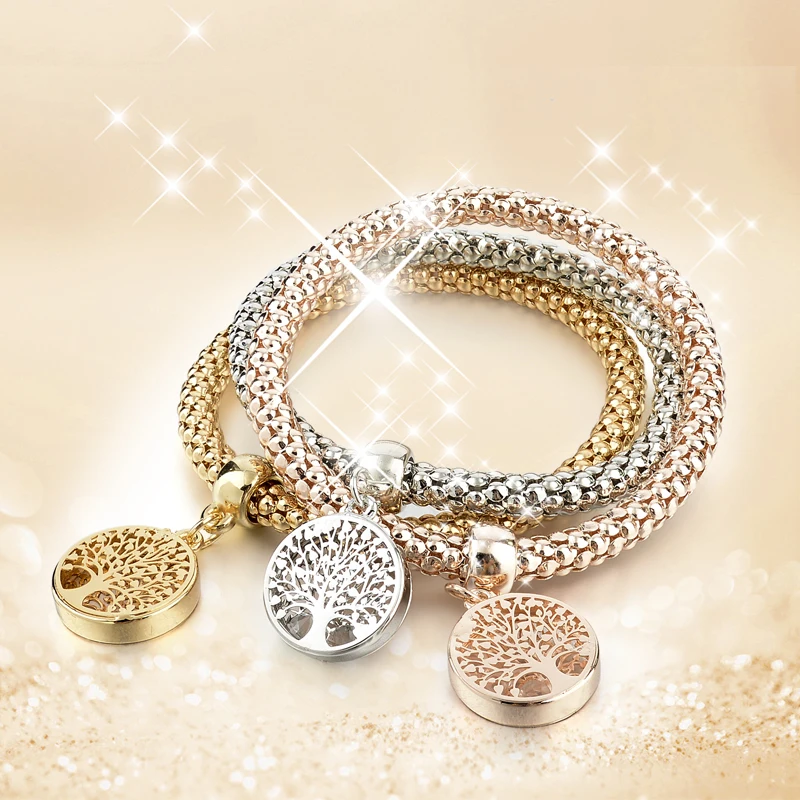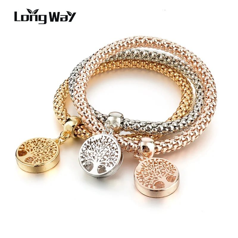 Buy LongWay Vintage Designer Austrian Rhinestones Gold Color Tree of Life Charm Bracelets Popcorn Chain