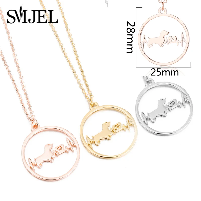 New SMJEL Cartoon Dog Pendant Necklace for Women Fashion German Shepherd Jewelry Heartbeat Paw Choker N