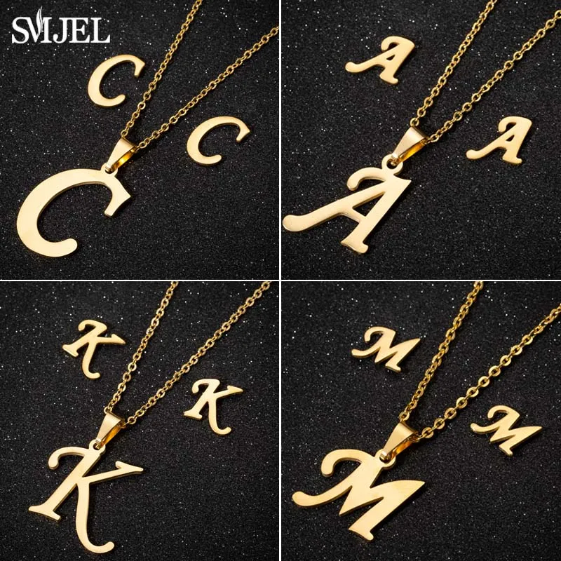 New SMJEL Fashion A-Z Letter Alphabet Pendant Necklace Boho Gold Color Chain Initial Name Necklaces Cha