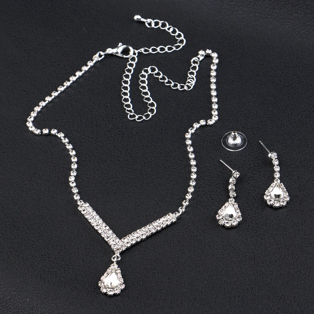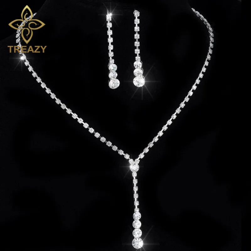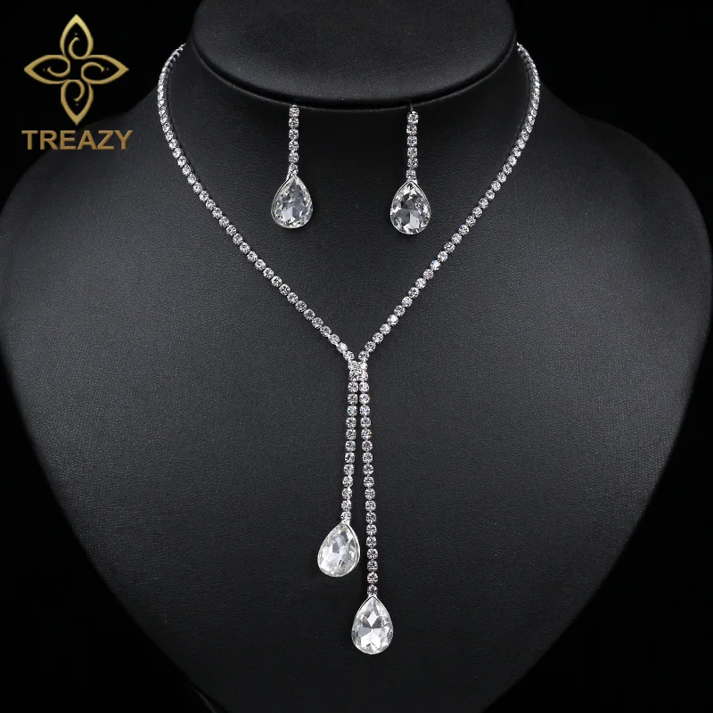 New TREAZY New Fashion Celebrity Style Tassel Drop Crystal Necklace Earrings Set for Women Bridal Bride