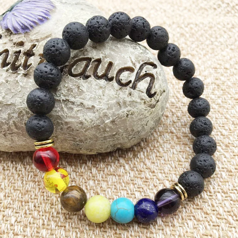 Best Black Lava Rock 8mm Beads 7 Chakra Healing Balance Bracelet for Men Women Reiki Prayer Stone Yoga C