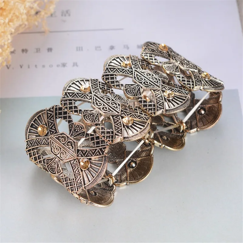 Buy Wide Adjustable Strand Bracelet For Women Brand Carving Flower Gold Silver Metal Marcasite Bracelet